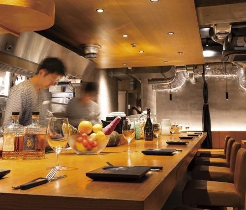 Our pride and joy, our counter seats, are stylish and relaxing, and the adult atmosphere where you can enjoy a space for two is popular. Relax in our restaurant with indirect lighting while watching the chef cook right in front of you.